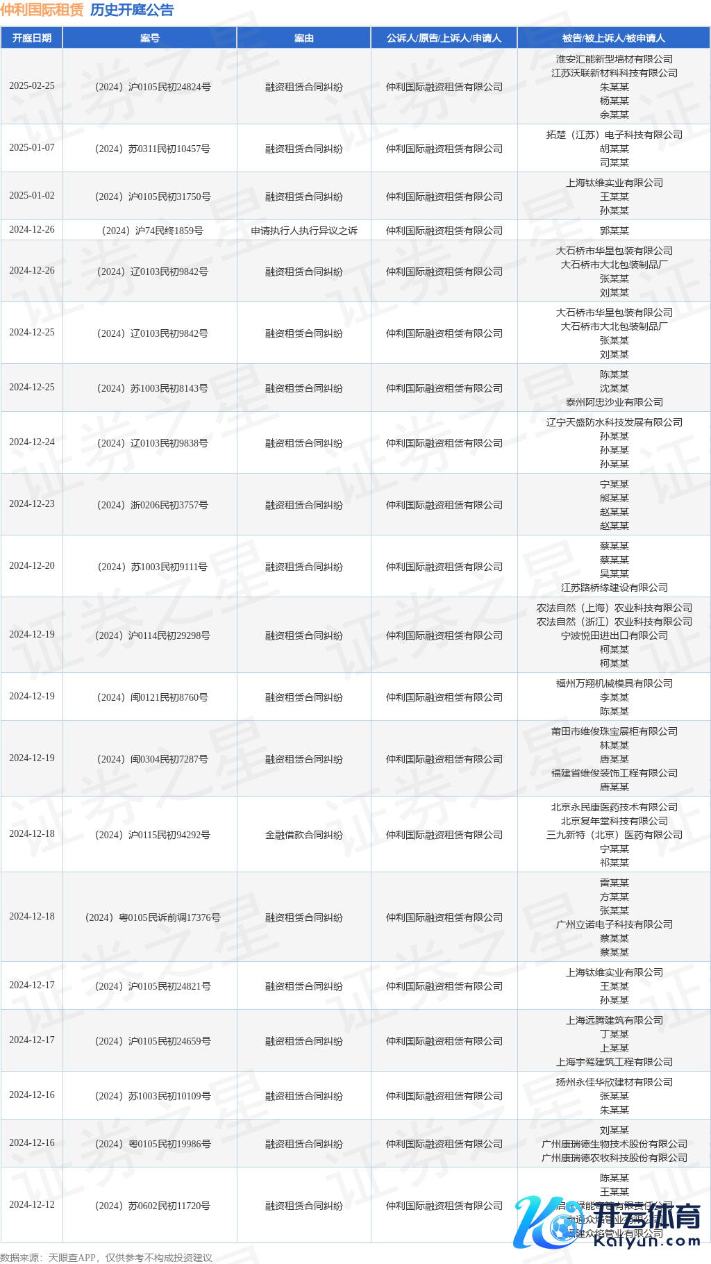 本站讯息,凭证天眼查APP清楚,近日公布了一则仲利外洋融资租借有限公司当作原告/上诉东谈主的开庭公告,详备本色如下: