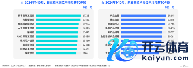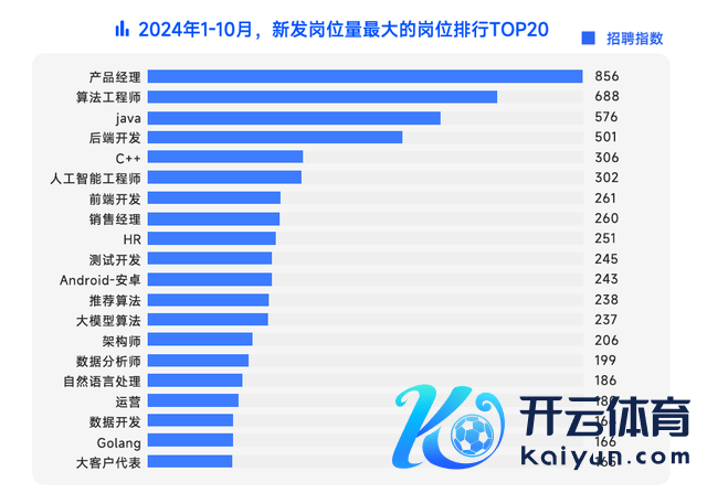 2024年1-10月,新发岗亭数目最多的岗亭聚积在期间类岗亭。天然居品司理位列新发岗亭量TOP1,但在热招的前20岗亭中,15个为期间类岗亭,其中有5个与AI关联,包括算法⼯程师、⼈⼯智能⼯程师、保举算法、⼤模子算法以及⾃然语⾔责罚。 种种设立岗亭需求也⾮常郁勃,如java、后端设立、 C++、测试设立、前端设立和Android设立等。