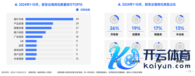 跟着中国企业出海⽇趋活跃,出海⼈才的招聘需求增⻓彰着。凭据《中国证券时报》报说念,2024年上半年比2023年同期,出海上市公司数增长约4.9%。《讲解》数据披露,2024年1-10月,新发出海岗亭数目占一起新发岗亭的⽐例为2.70%,相较于客岁同期的1.89%,显贵增长43%。