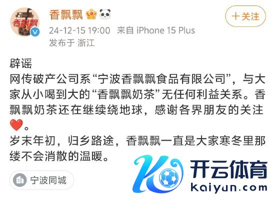 对此信息,12月15日晚,香飘飘官微发布声明称:歇业公司系“宁波香飘飘食物有限公司”,与“香飘飘奶茶”无任何利益干系。香飘飘奶茶还在链接绕地球。(罗宁)