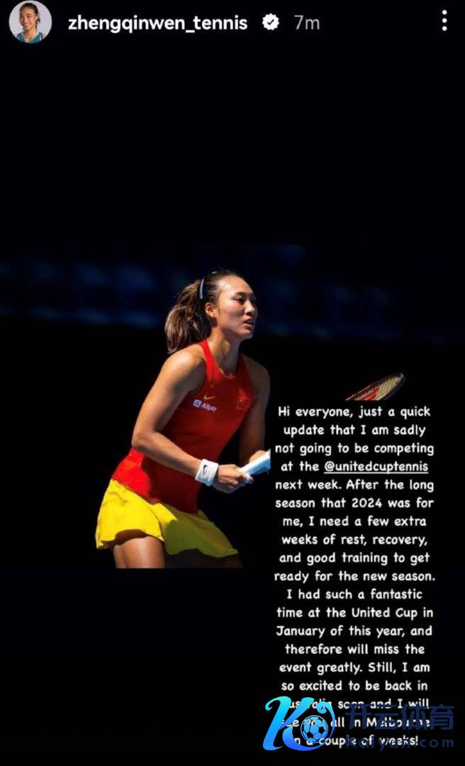 郑钦文在移交媒体上说,“内行好,很缺憾我将不会进入下周聚会杯的比赛。在资格了漫长的2024赛季之后,我需要多几周的技术来休息和规复,好好查考为新赛季作念准备。本年1月,我在聚会杯渡过了一段好意思好的时光,因此我会异常念念念这项赛事。不外我仍是很欢笑很快就能回到澳大利亚,几周后咱们在墨尔本见。”