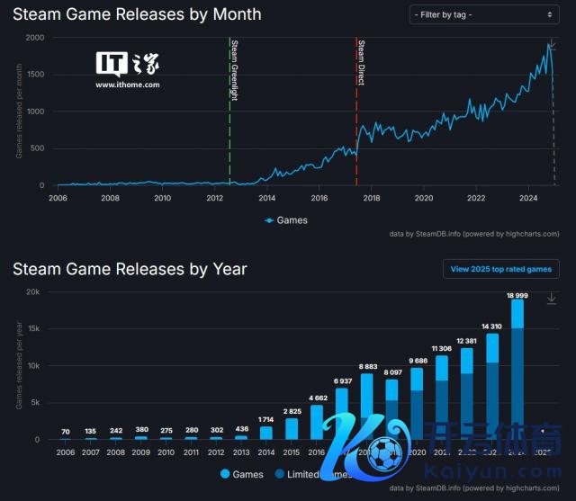 IT 之家持重到,阐明 SteamDB 的数据,2024 年 Steam 共刊行了 18,999 款游戏(且数据仍在更新),突破了昨年 14,311 款的记载,创下历史新高。