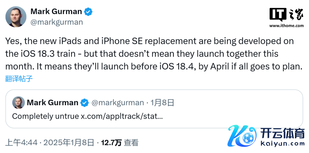 古尔曼则以为,这只可评释新的 iPhone 16E 将会在 iOS 18.4 推出之前,也即是最晚 4 月发布。