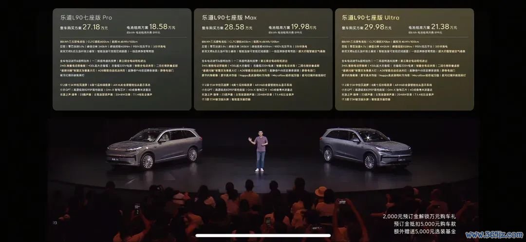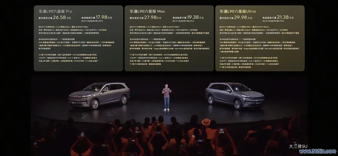 7月31日,乐说念品牌全新车型——乐说念L90发达上市,提供六座版和七座版车型,分裂推出Pro、Max、Utrla版,其中六座版整车购买26.58万元起,BasS电板租借售价17.98万元起,七座版整车购买27.18万元起,BasS电板租借售价18.58万元起。概括此前报说念,乐说念L90定位大型SUV,基于蔚来NT3.0平台打造,剿袭纯电能源,支捏换电,提供2+2+2六座版和2+3+2七座版可选。