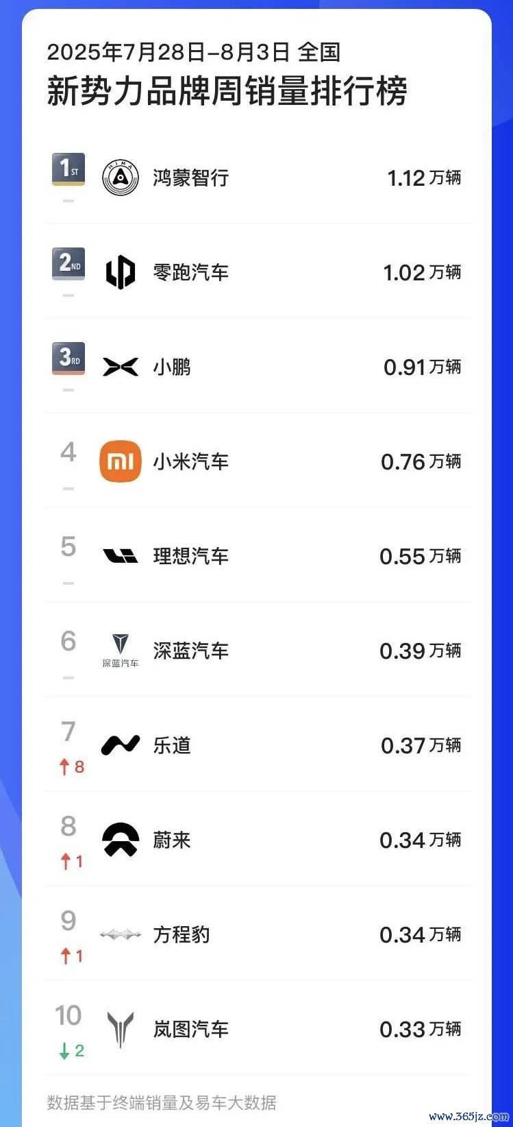 左证易车公布的数据流露,蔚来在上周(7.28-8.03)上险量为0.34万辆,在新势力中排名第八,乐说念汽车为0.37万辆,在新势力中排名第七。