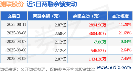 本站音书,8月11日,溯联股份(301397)融资买入8700.92万元体育游戏app平台,融资偿还5806.02万元,融资净买入2894.9万元,融资余额2.87亿元。